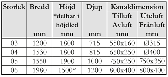 - Hölje utfört i stålplåt med korrosivitetsklass C5. Inspektionsluckor utförda i svart plastbelagd plåt försedda med låsbara vred. Isolering 40mm brandhärdig mineralull. Höljets täthetsklass L2.